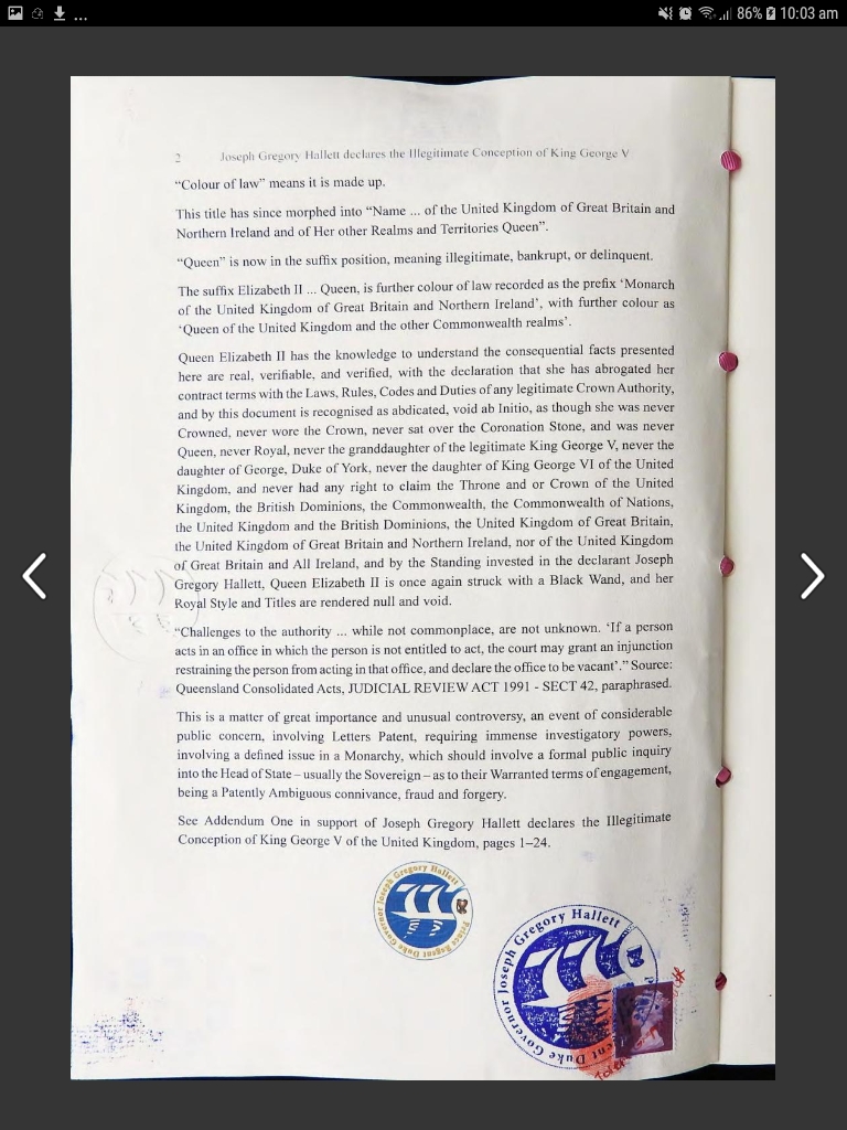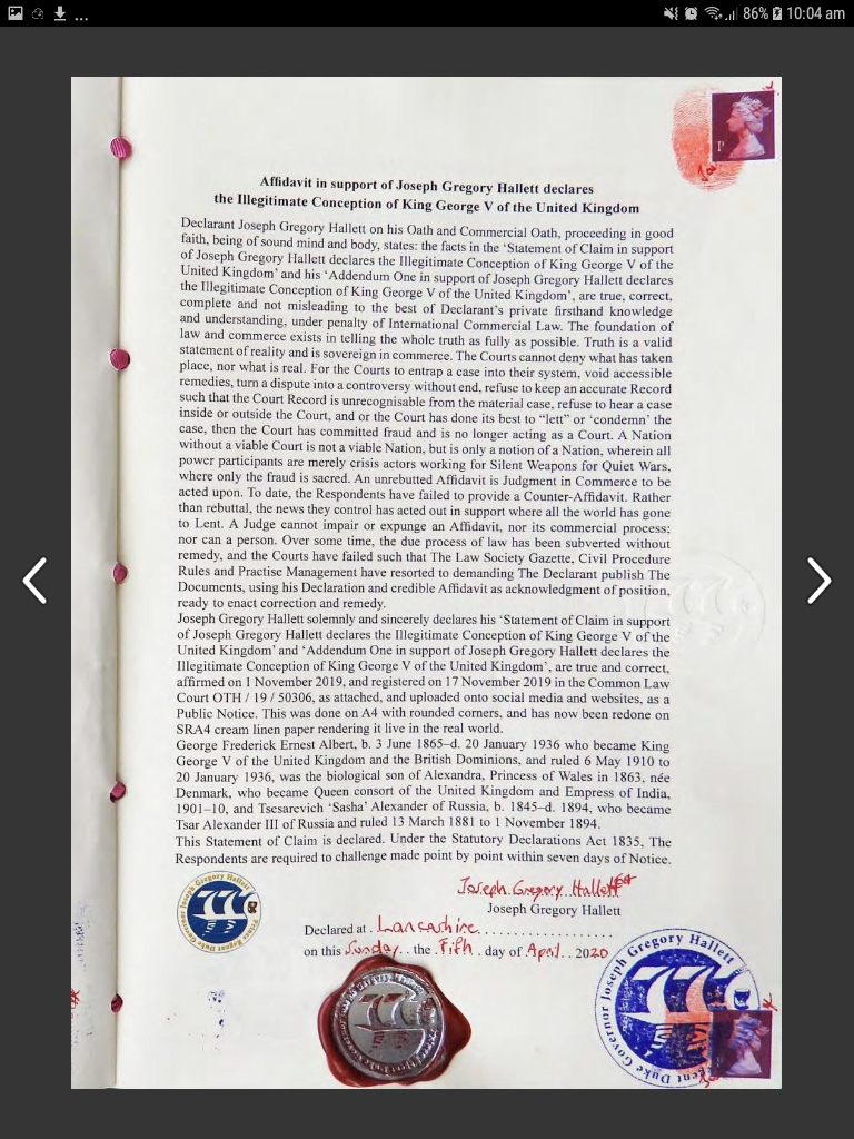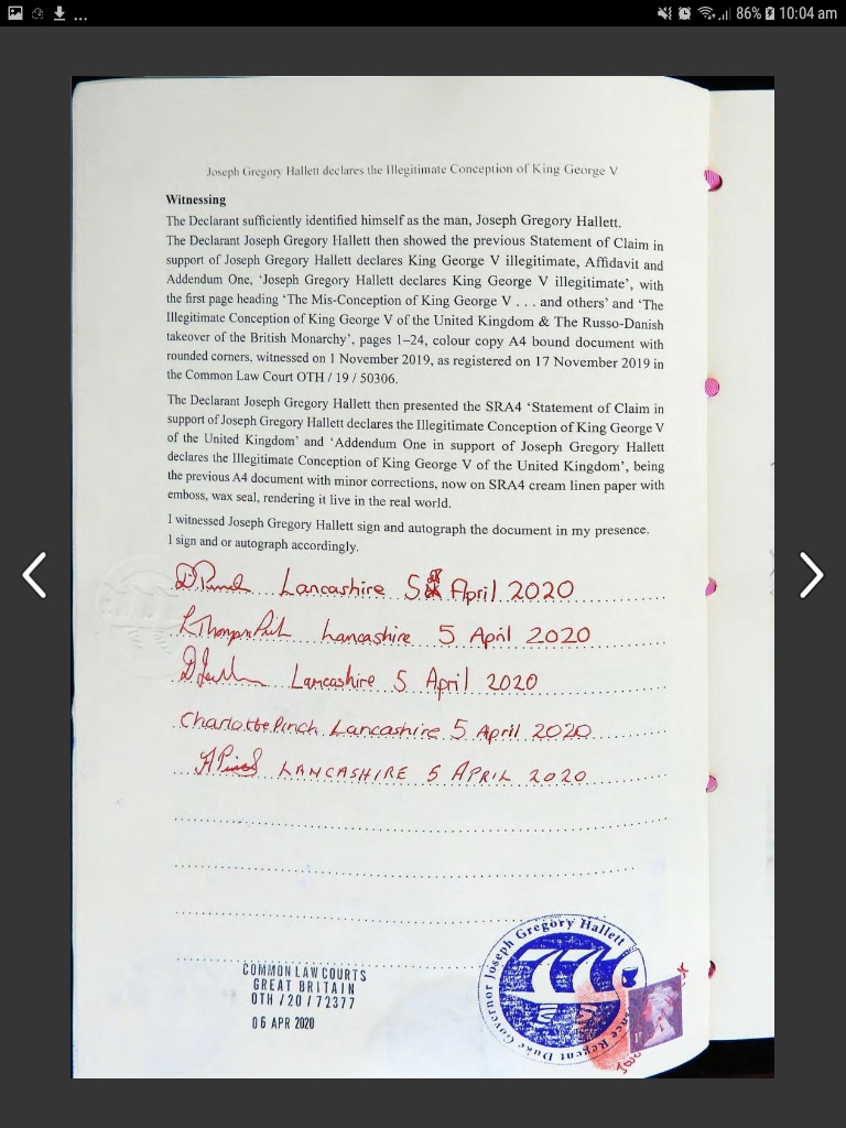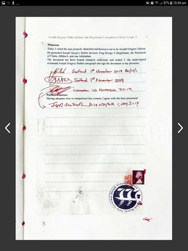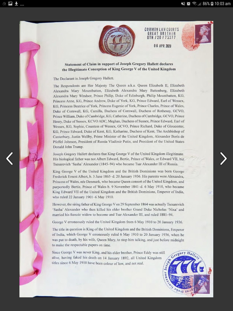 One thing is for sure Greg Hallett has presented much information to many people that he is the true Heir to the Throne of England and Ireland.